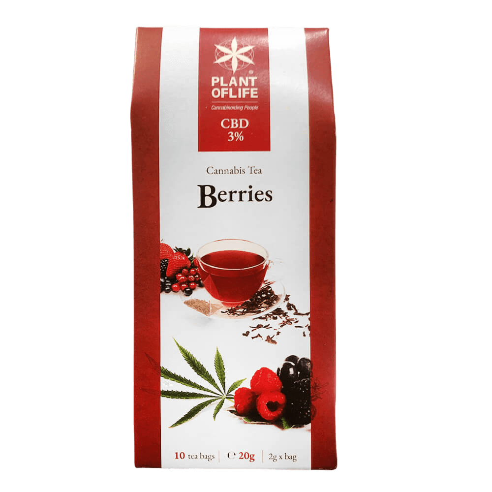Plant of Life 2,5%-3% CBD Infusion Tea Berries est un thé de chanvre en vrac haut de gamme mélangeant des fleurs et feuilles de chanvre certifiées UE avec des arômes naturels de baies. Chaque sachet de 20 g offre un goût doux, fruité mais terreux et contient 2,5%-3% de CBD naturellement présent, entièrement conforme aux réglementations européennes sur le chanvre industriel (0,2% THC).